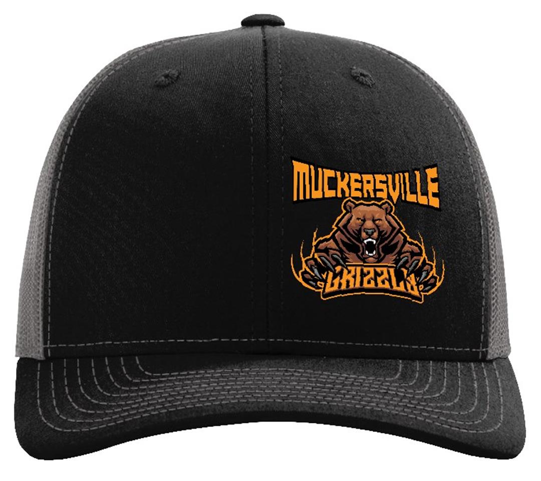 Richardson 112 6 Pannel Trucker Hat Black Charcoal Muckersville Grizzly