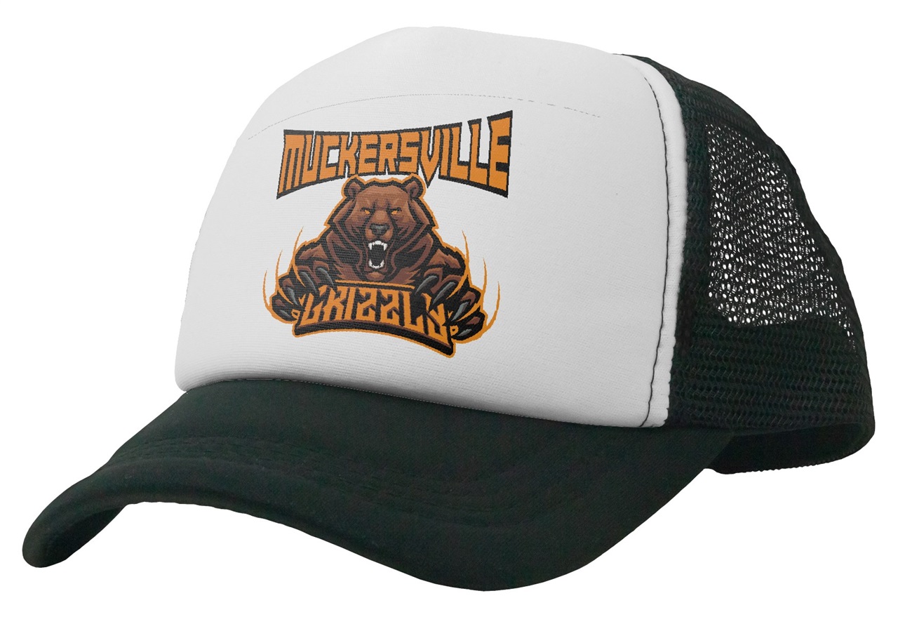 Old School Throwback Trucker Hat Black White Muckersville Grizzly