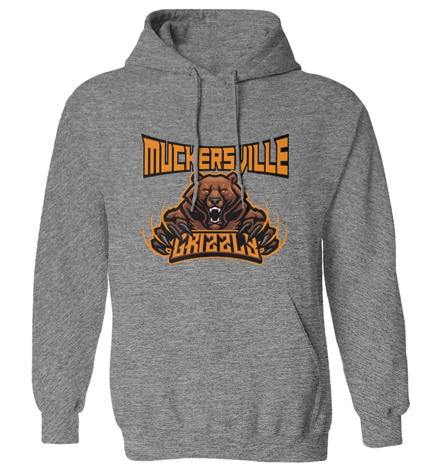 Pullover Hoodie Heather Grey Adult (S) Muckersville Grizzly