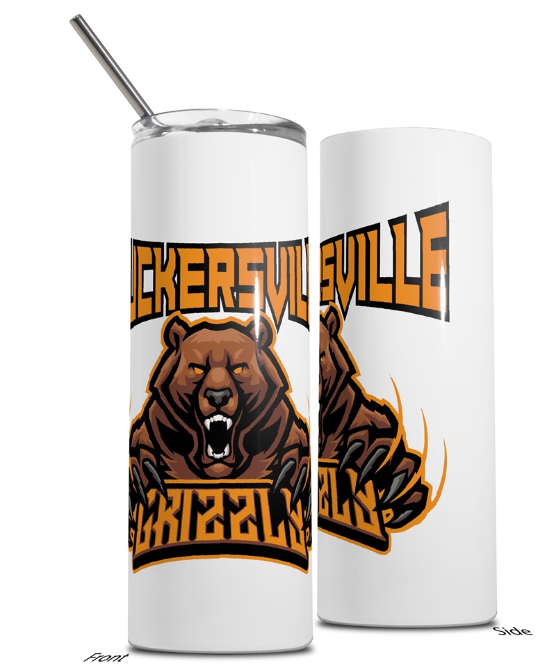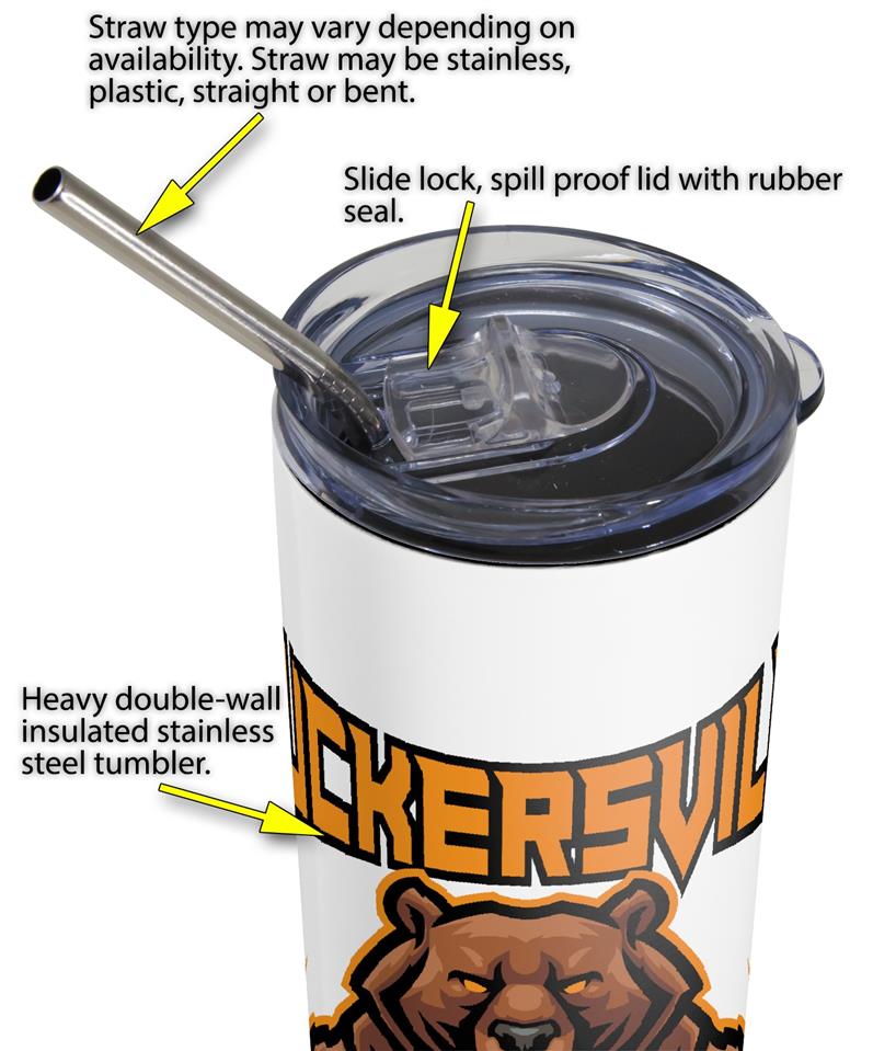 20oz Tumbler Stainless Steel, Double Wall Insulated, Straw, Spill Proof Lid White Muckersville Grizzly
