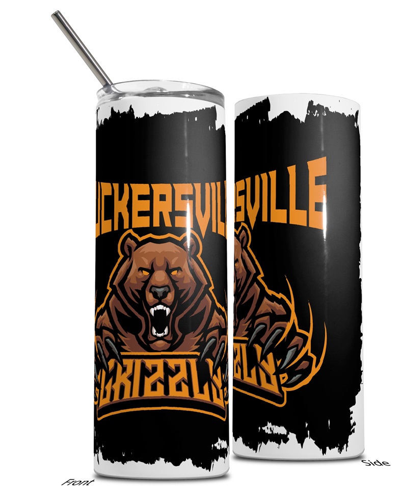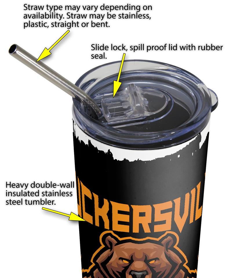 20oz Tumbler Stainless Steel, Double Wall Insulated, Straw, Spill Proof Lid Black Muckersville Grizzly
