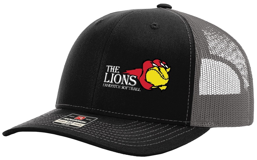 Richardson 112 6 Pannel Trucker Hat Black Charcoal Lions Softball